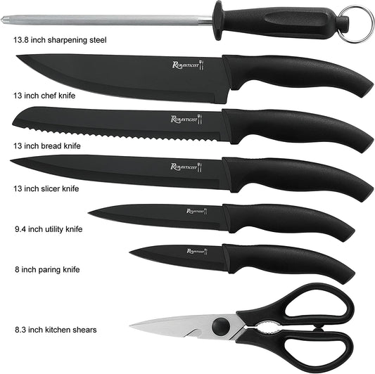 ROMANTICIST Kitchen Knife Set with Block - 8 PCS High Carbon Stainless Steel with Chef's Knife