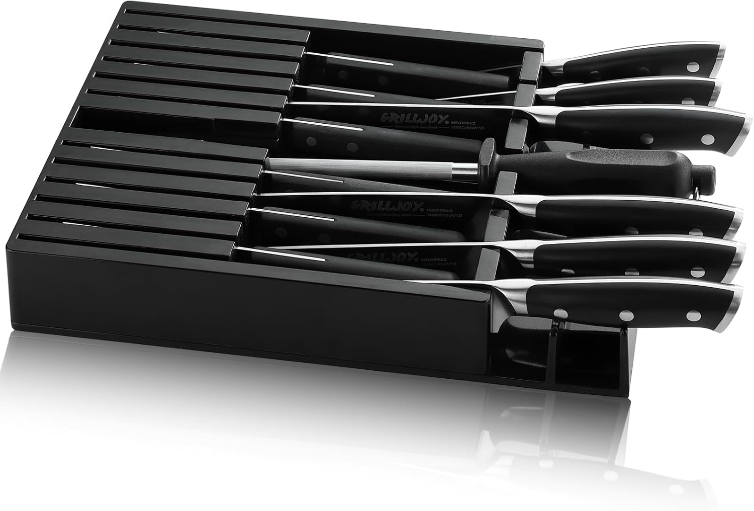 Grilljoy Premium Knife Set 17PCS with Retractable Knife Block